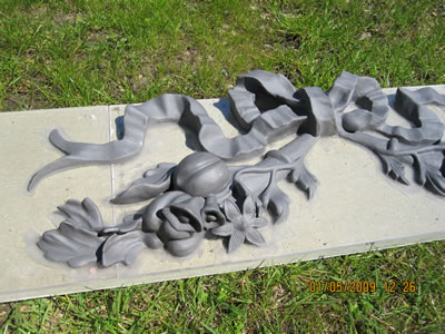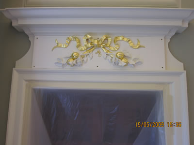 The art of gilding is an ancient technique using the same materials and methods today as hundreds of years ago. First the structure is built and carved, then gesso, which is made from animal skin glue and whiting(ground chalk), is gradually applied, producing a hard, evenly smooth layer. Red, black, blue, or yellow clay or bole is painted on the smoothed gesso surface. 22kt gold leaf is then applied with a gilder’s tip, a thin, flat brush. The gold may then be burnished with an agate stone, or rubbed and antiqued, depending on the desired finish.
