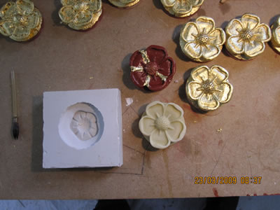 The work we produce is often gilded, and the examples here show water and oil based gilding in 22ct gold employing the traditional methods of application.