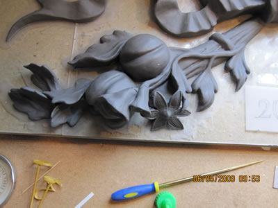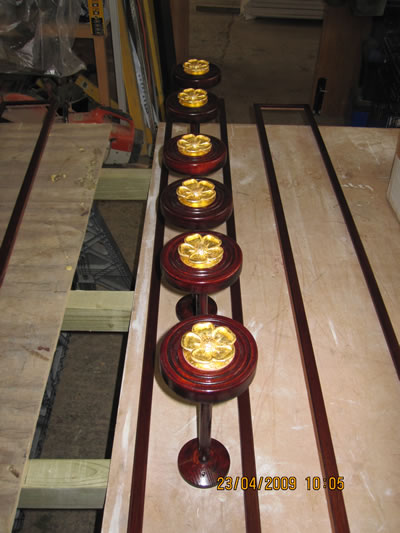 The work we produce is often gilded, and the examples here show water and oil based gilding in 22ct gold employing the traditional methods of application.